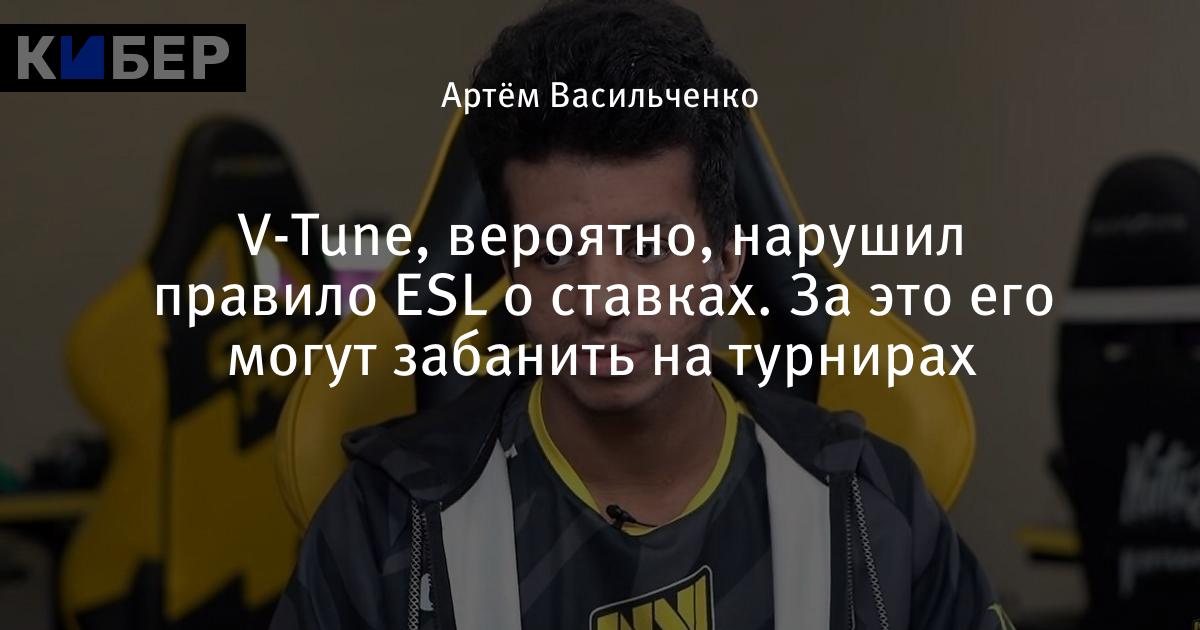 V-Tune, вероятно, нарушил правило ESL о ставках. За это его могут забанить на турнирах