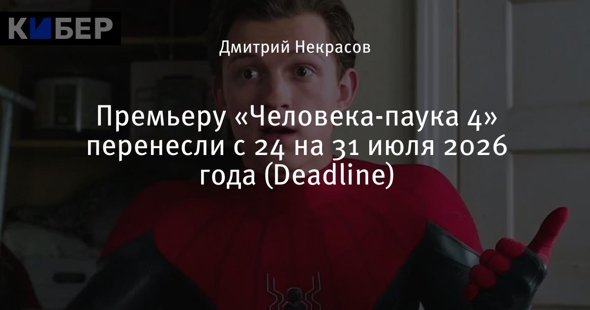 Deadline сообщает, что «Человек-паук 4» теперь выйдет 31 июля 2026 года, а не 24 июля того же года.