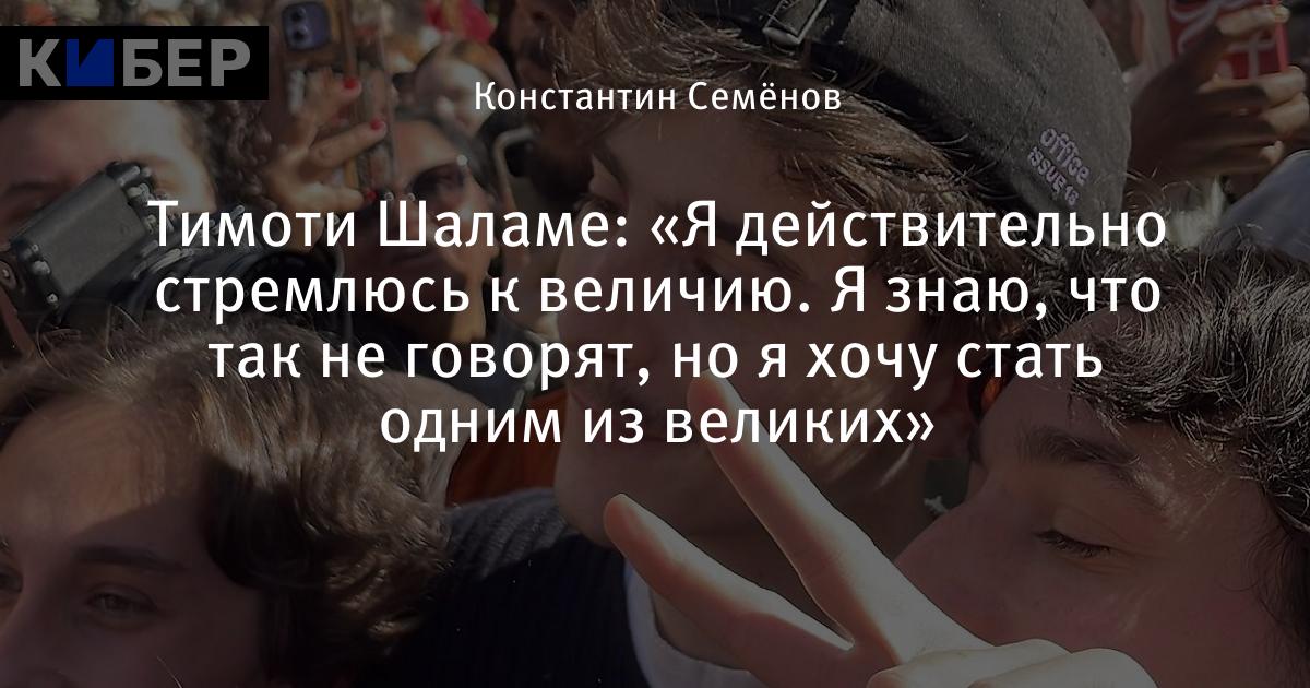 Тимоти Шаламе: «Я действительно стремлюсь к величию. Я знаю, что так не говорят, но я хочу стать одним из великих»