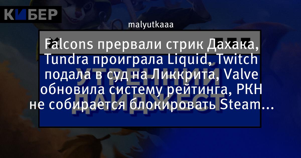 Falcons прервали стрик Дахака, Tundra проиграла Liquid, Twitch подала в суд на Ликкрита, Valve обновила систему рейтинга, РКН не собирается блокировать Steam и другие новости утра