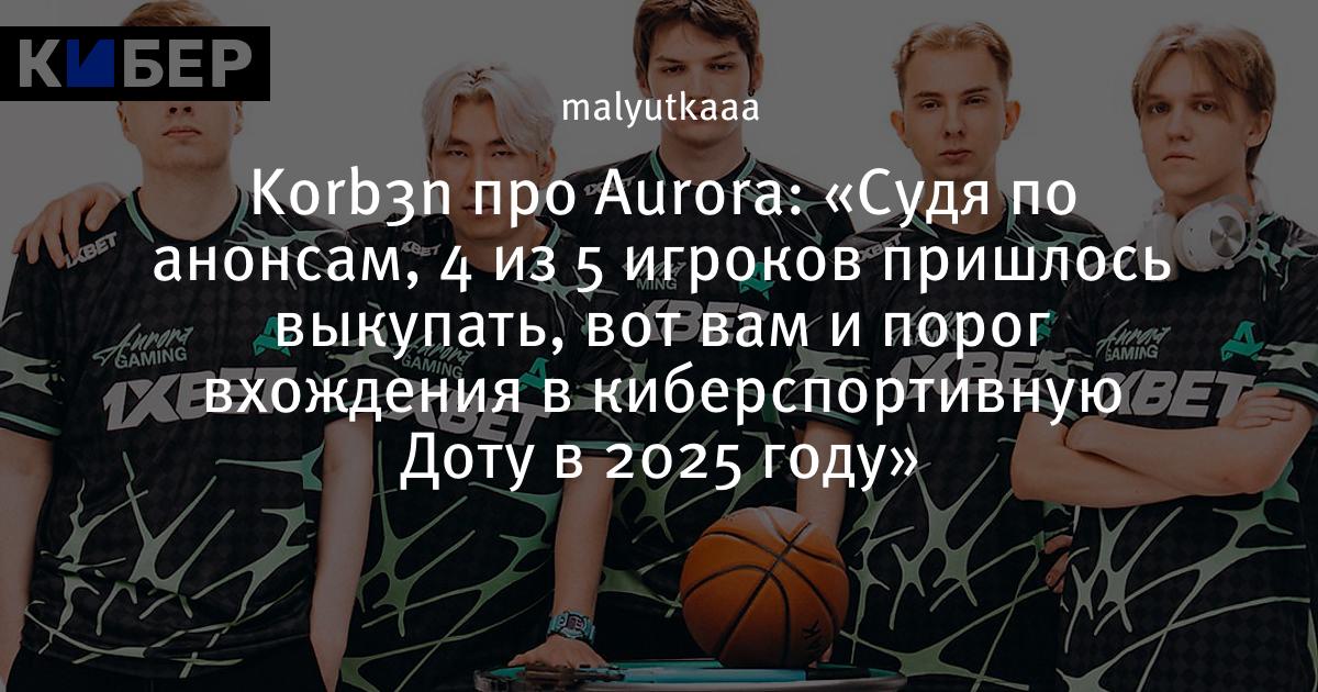 Korb3n про Aurora: «Судя по анонсам, 4 из 5 игроков пришлось выкупать, вот вам и порог вхождения в киберспортивную Доту в 2025 году»