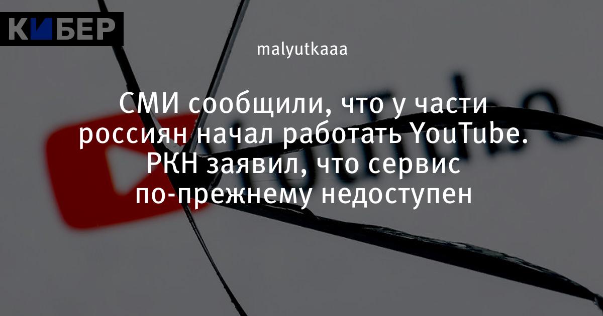 СМИ сообщили, что у части россиян начал работать YouTube. РКН заявил, что сервис по-прежнему недоступен