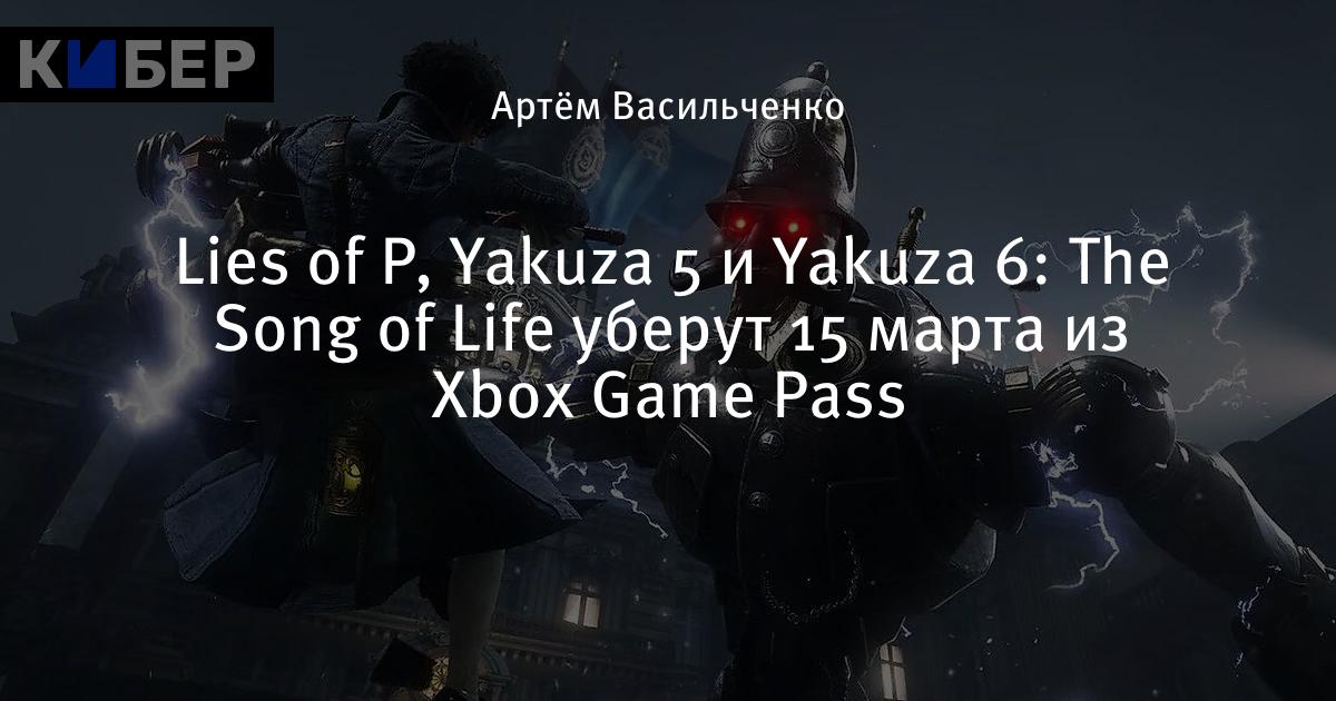 Lies of P, Yakuza 5 и Yakuza 6: The Song of Life уберут 15 марта из Xbox Game Pass