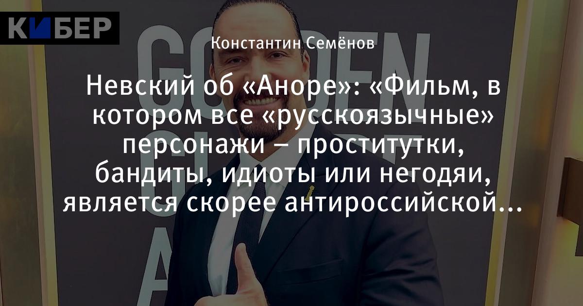 Невский об «Аноре»: «Фильм, в котором все «русскоязычные» персонажи – проститутки, бандиты, идиоты или негодяи, является скорее антироссийской пропагандой»