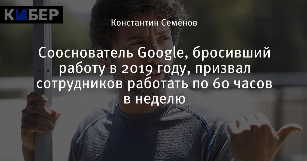 Сооснователь Google, бросивший работу в 2019 году, призвал сотрудников работать по 60 часов в неделю