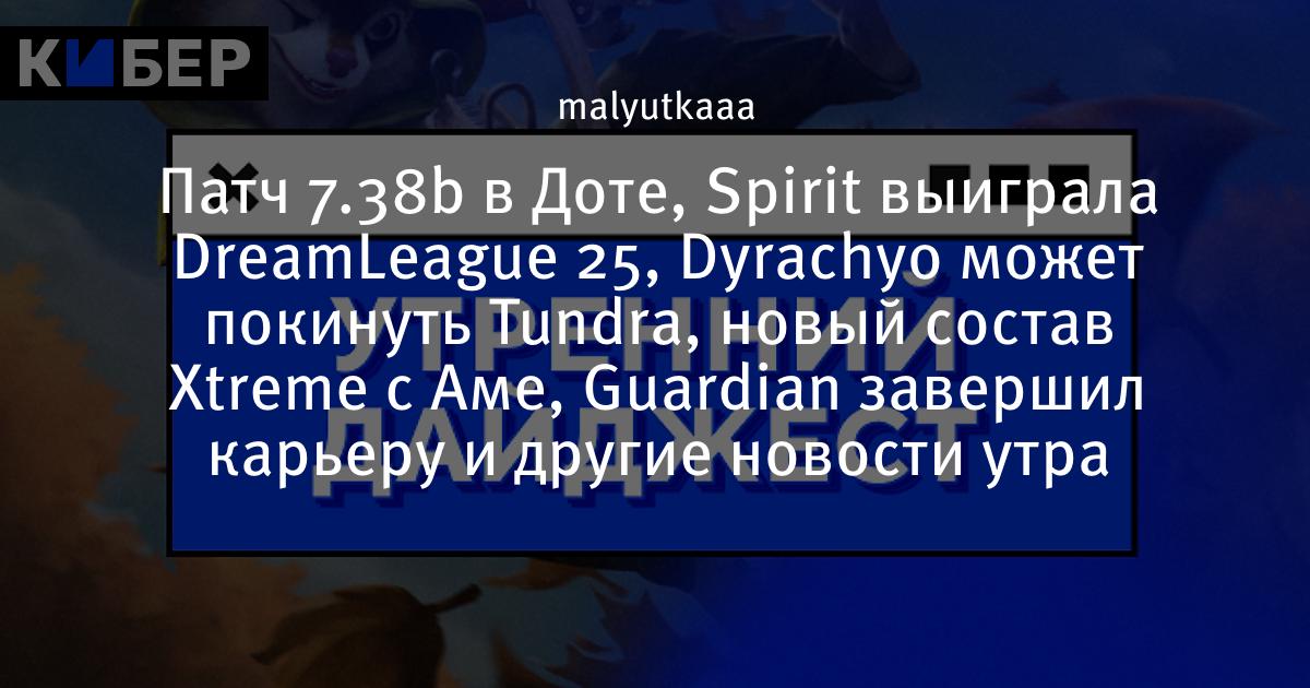 Патч 7.38b в Доте, Spirit выиграла DreamLeague 25, Dyrachyo может покинуть Tundra, новый состав Xtreme с Аме, Guardian завершил карьеру и другие новости утра