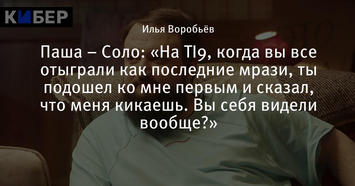 Паша – Соло: «На TI9, когда вы все отыграли как последние мрази, ты подошел ко мне первым и сказал, что меня кикаешь. Вы себя видели вообще?»
