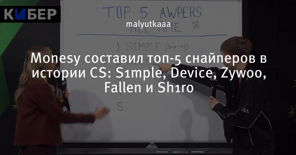 M0nesy составил топ-5 снайперов в истории CS: S1mple, Device, Zywoo, Fallen и Sh1ro