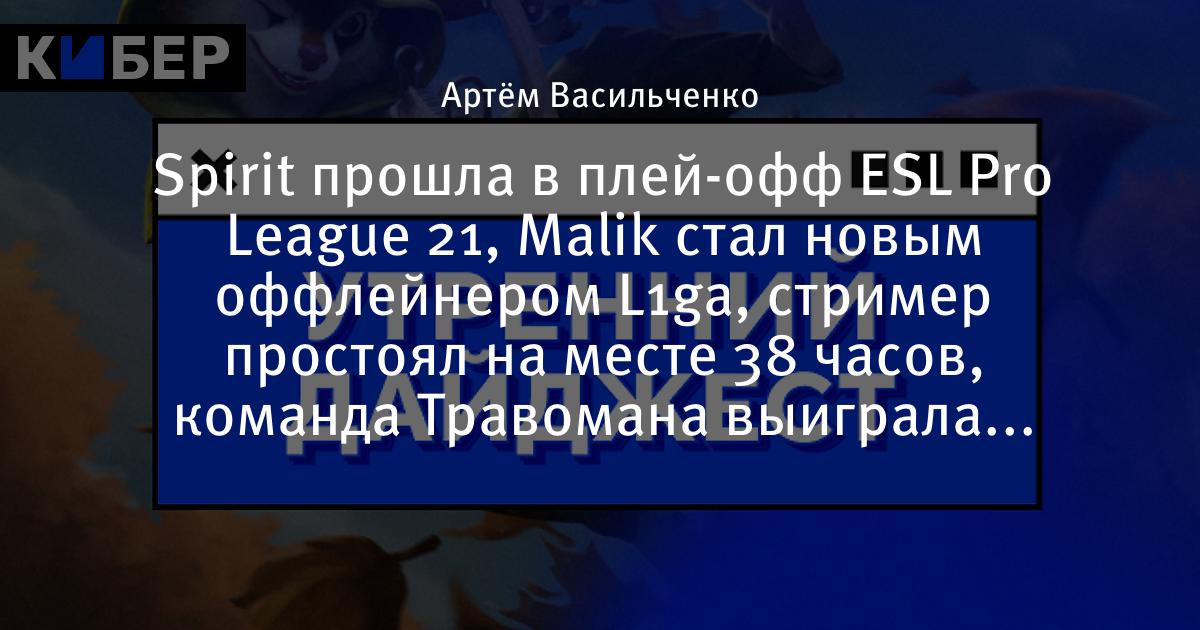 Spirit прошла в плей-офф ESL Pro League 21, Malik стал новым оффлейнером L1ga, стример простоял на месте 38 часов, команда Травомана выиграла BetBoom Media Chess и другие новости утра