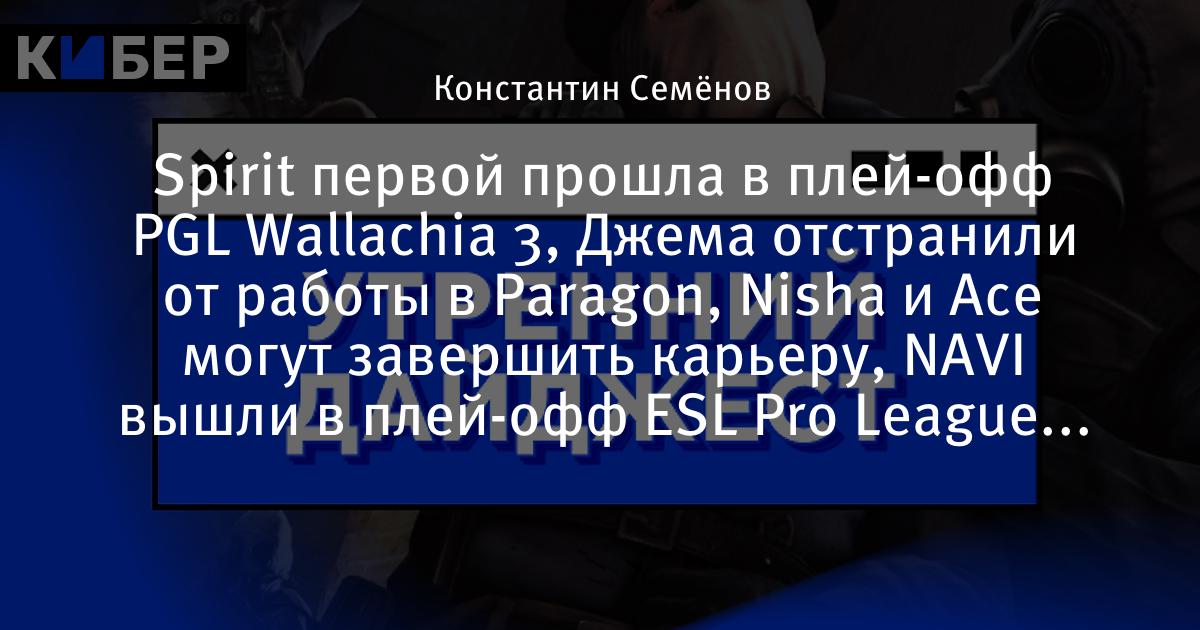 Spirit первой прошла в плей-офф PGL Wallachia 3, Джема отстранили от работы в Paragon, Nisha и Ace могут завершить карьеру, NAVI вышли в плей-офф ESL Pro League 21 и другие новости утра