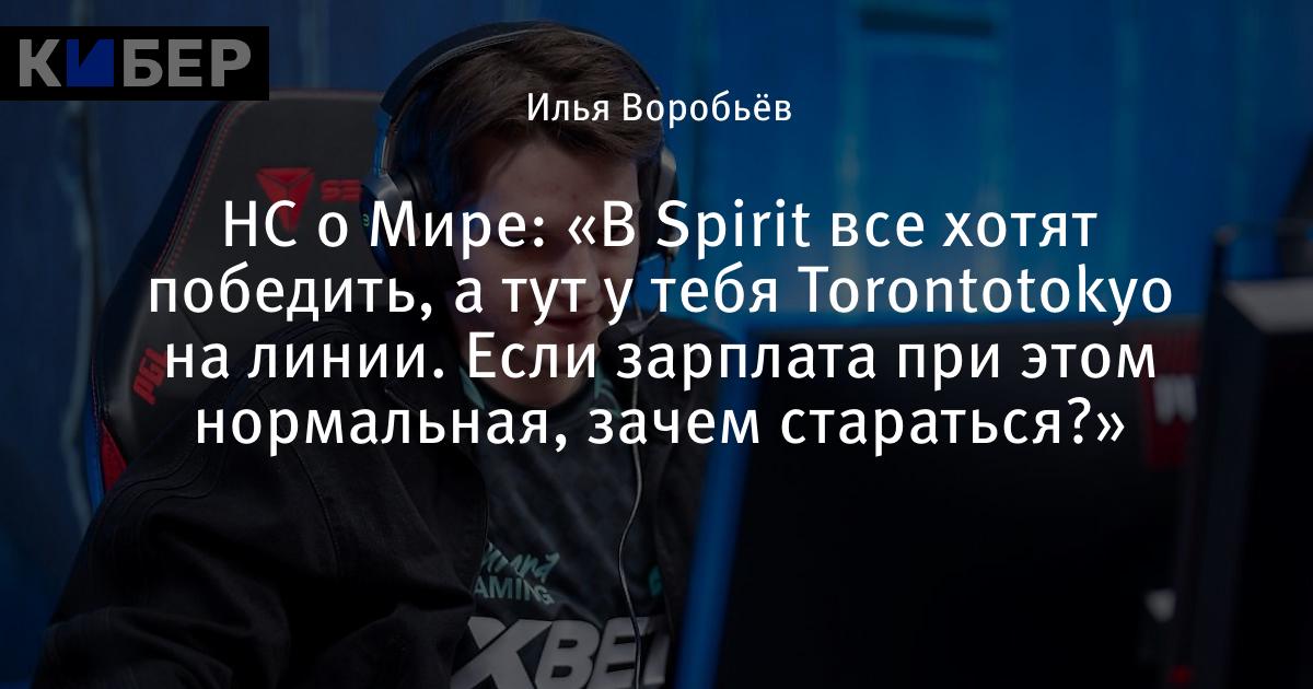 НС о Мире: «В Spirit все хотят победить, а тут у тебя Torontotokyo на линии. Если зарплата при этом нормальная, зачем стараться?»