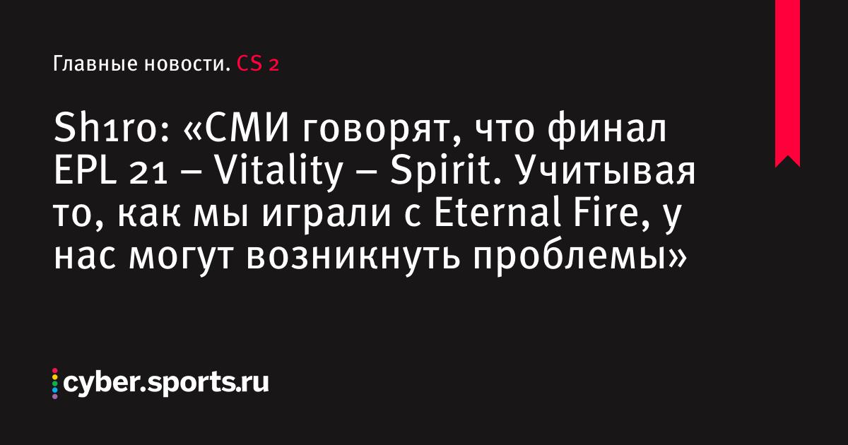 Пока я не думаю о финале. СМИ говорят, что финал ESL Pro League 21 – Vitality – Spirit. Учитывая то, как мы играли сегодня [с Eternal Fire]... Наш завтрашний соперник тоже будет трудным – мы не играли с Mouz долгое время. У нас могут возникнуть проблемы», – отметил Дмитрий «Sh1ro» Соколов.