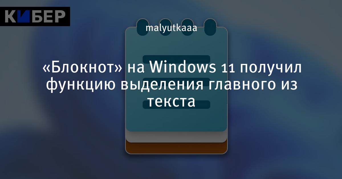 «Блокнот» на Windows 11 получил функцию выделения главного из текста