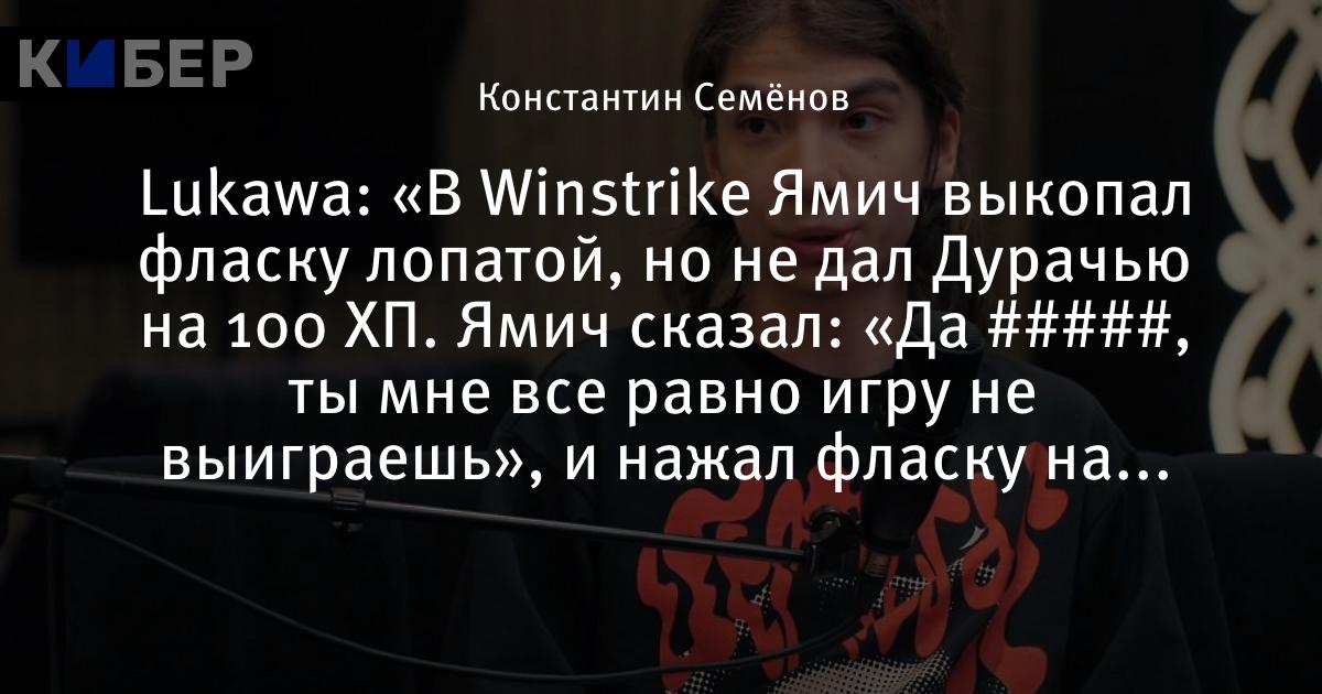 Lukawa: «В Winstrike Ямич выкопал фласку лопатой, но не дал Дурачью на 100 ХП. Ямич сказал: «Да #####, ты мне все равно игру не выиграешь», и нажал фласку на себя»