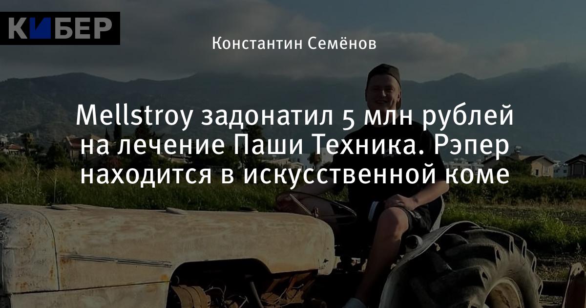 Mellstroy задонатил 5 млн рублей на лечение Паши Техника. Рэпер находится в искусственной коме