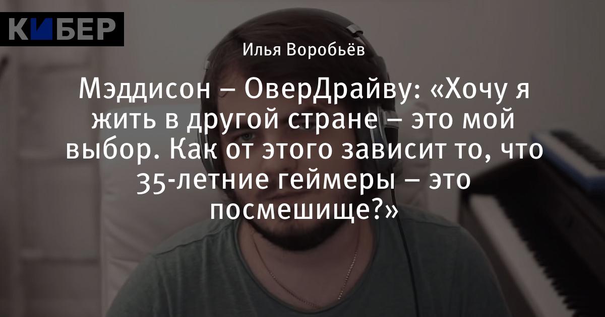 Мэддисон – ОверДрайву: «Хочу я жить в другой стране – это мой выбор. Как от этого зависит то, что 35-летние геймеры – это посмешище?»