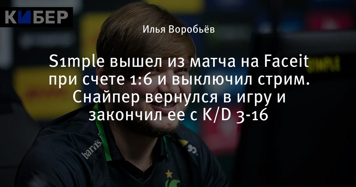 Позже Александр «S1mple» Костылев вернулся в матч. Команда снайпера проиграла 5:13, а S1mple закончил карту со счетом 3-16.