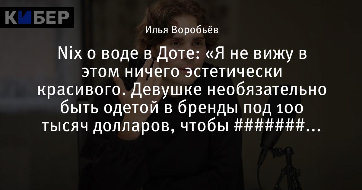 Nix о воде в Доте: «Я не вижу в этом ничего эстетически красивого. Девушке необязательно быть одетой в бренды под 100 тысяч долларов, чтобы ####### выглядеть»