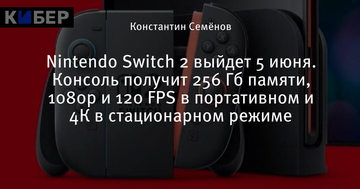 Nintendo Switch 2 выйдет 5 июня. Консоль получит 256 Гб памяти, 1080p и 120 FPS в портативном и 4К в стационарном режиме