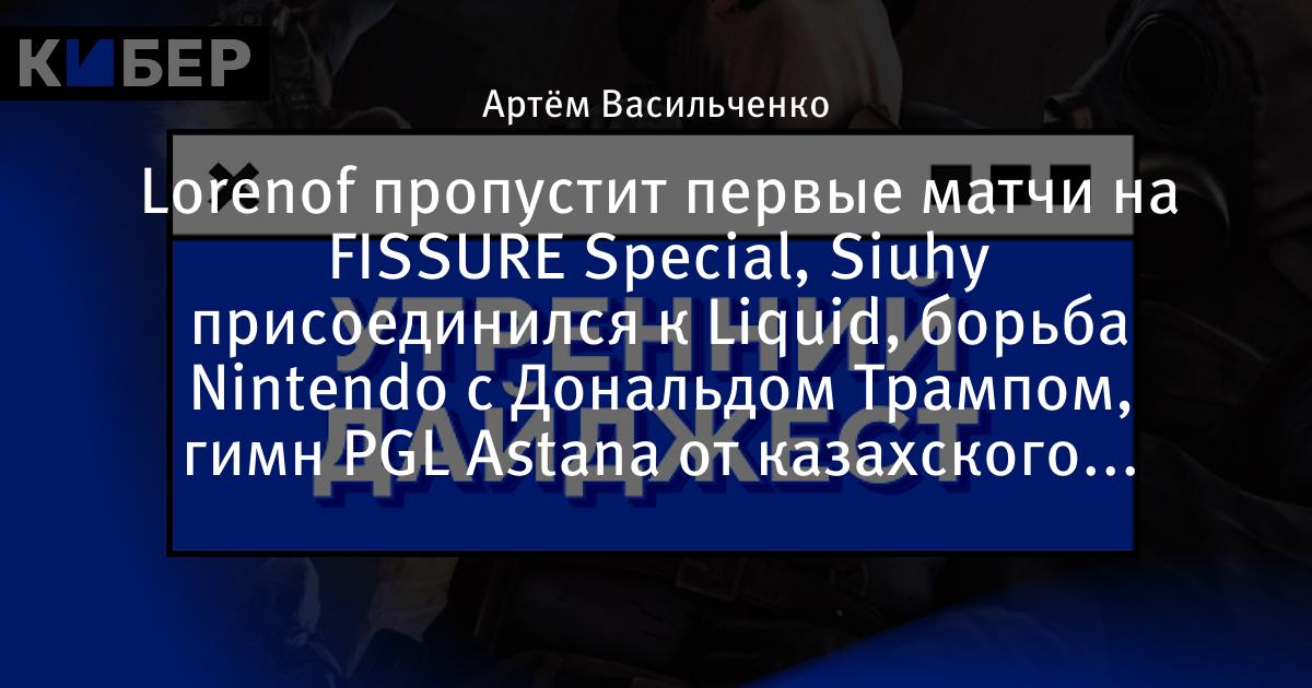 Lorenof пропустит первые матчи на FISSURE Special, Siuhy присоединился к Liquid, борьба Nintendo с Дональдом Трампом, гимн PGL Astana от казахского лауреата «Грэмми» и другие новости утра