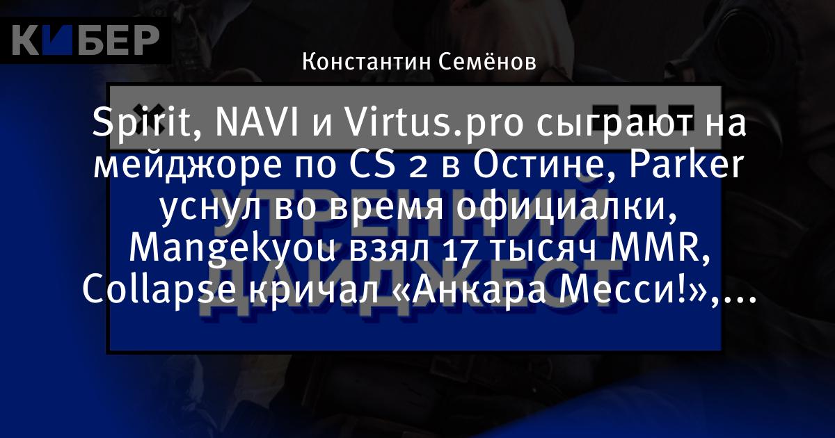 Spirit, NAVI и Virtus.pro сыграют на мейджоре по CS 2 в Остине, Parker уснул во время официалки, Mangekyou взял 17 тысяч MMR, Collapse кричал «Анкара Месси!», играя пьяным в Доту, и другие новости утра