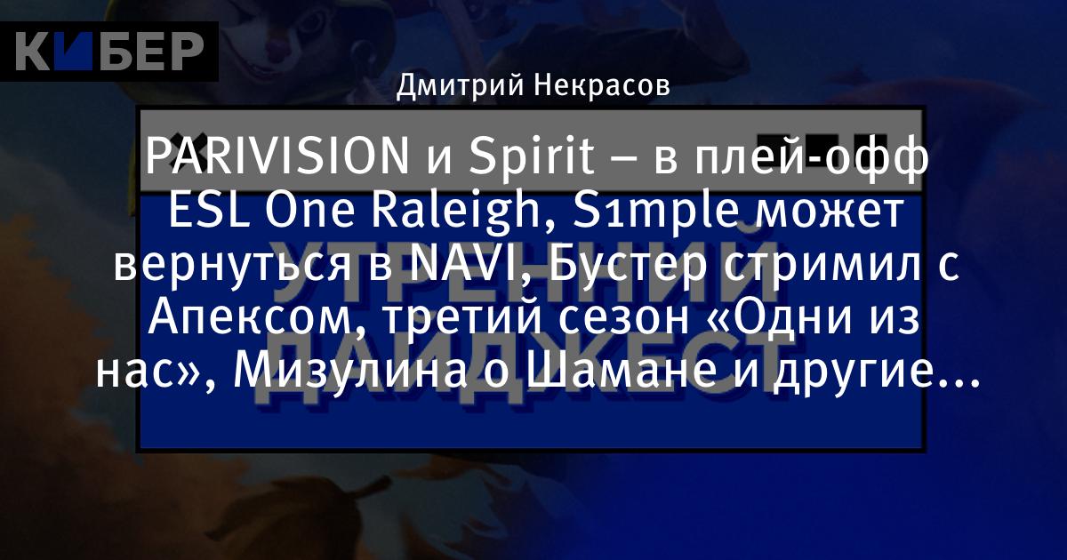 PARIVISION и Spirit – в плей-офф ESL One Raleigh, S1mple может вернуться в NAVI, Бустер стримил с Апексом, третий сезон «Одни из нас», Мизулина о Шамане и другие новости утра