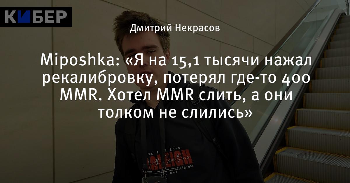 Miposhka: «Я на 15,1 тысячи нажал рекалибровку, потерял где-то 400 MMR. Сейчас опять 15 тысяч. [Зачем?] Хотел MMR слить, а они толком не слились».