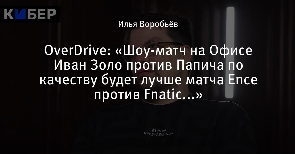 «Шоу-матч на Офисе Иван Золо против Папича по качеству будет лучше матча Ence против Fnatic...» – написал Алексей «OverDrive» Бирюков.