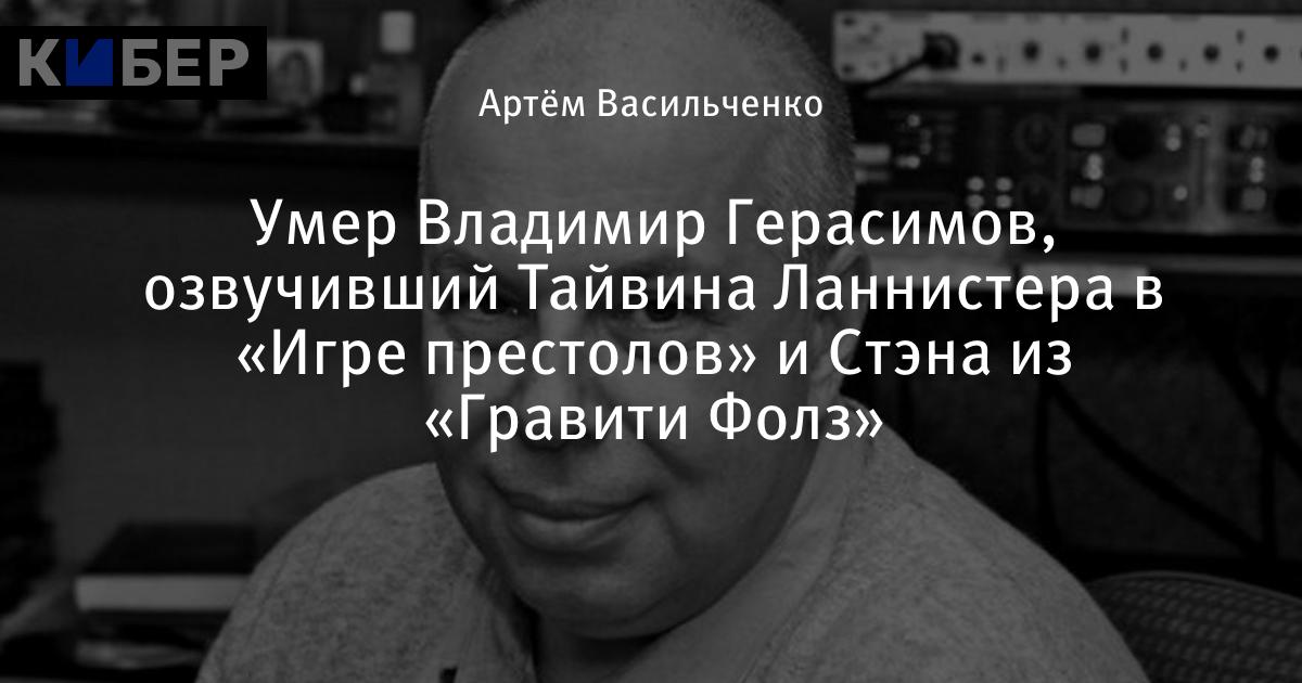 Умер Владимир Герасимов, озвучивший Тайвина Ланнистера в «Игре престолов» и Стэна из «Гравити Фолз»