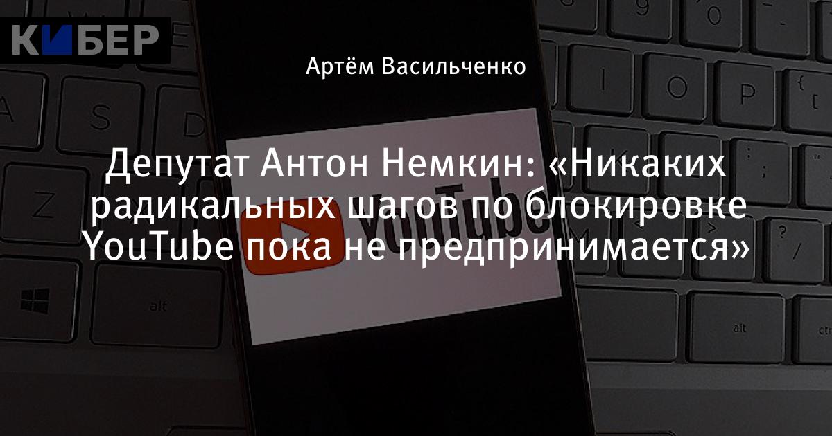 Депутат Антон Немкин: «Никаких радикальных шагов по блокировке YouTube пока не предпринимается»