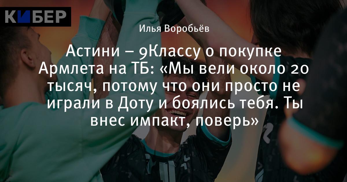 Астини – 9Классу о покупке Армлета на ТБ: «Мы вели около 20 тысяч, потому что они просто не играли в Доту и боялись тебя. Ты внес импакт, поверь»