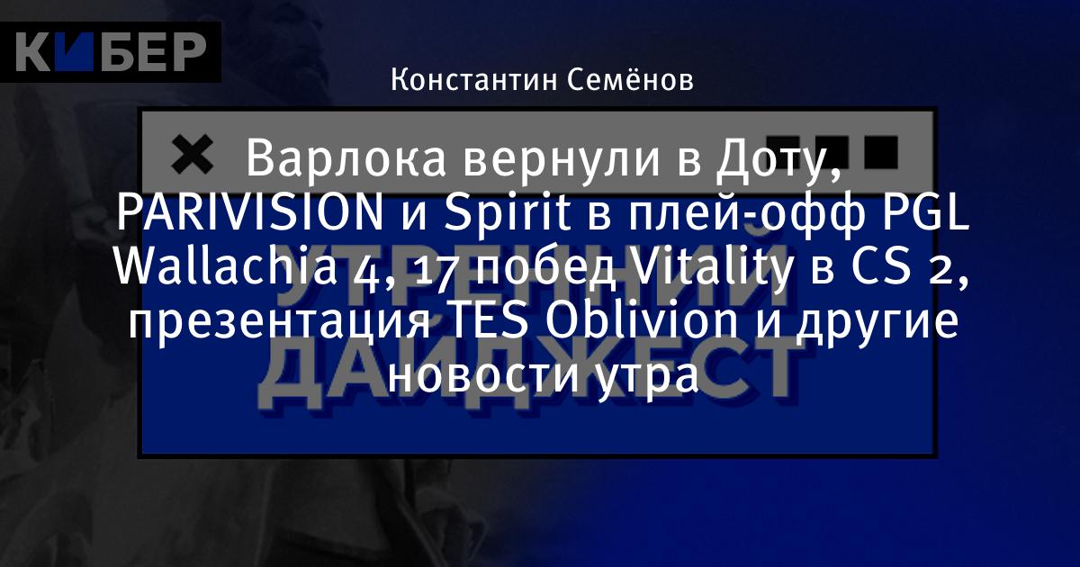 Варлока вернули в Доту, PARIVISION и Spirit в плей-офф PGL Wallachia 4, 17 побед Vitality в CS 2, презентация TES Oblivion и другие новости утра