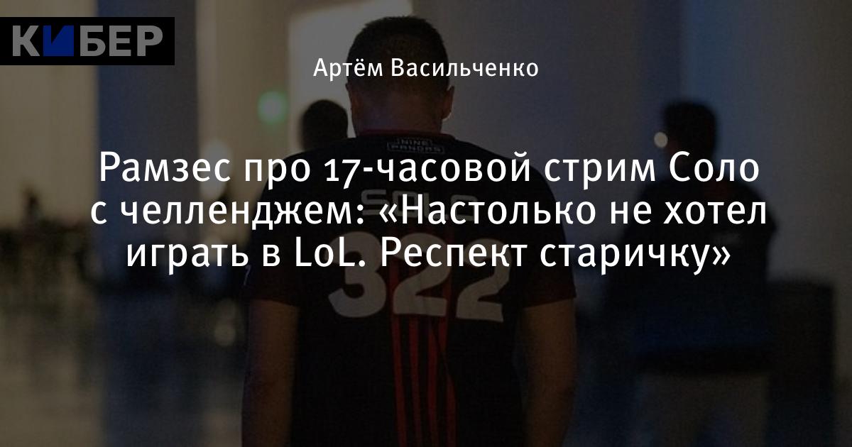 Рамзес про 17-часовой стрим Соло с челленджем: «Настолько не хотел играть в LoL. Респект старичку»