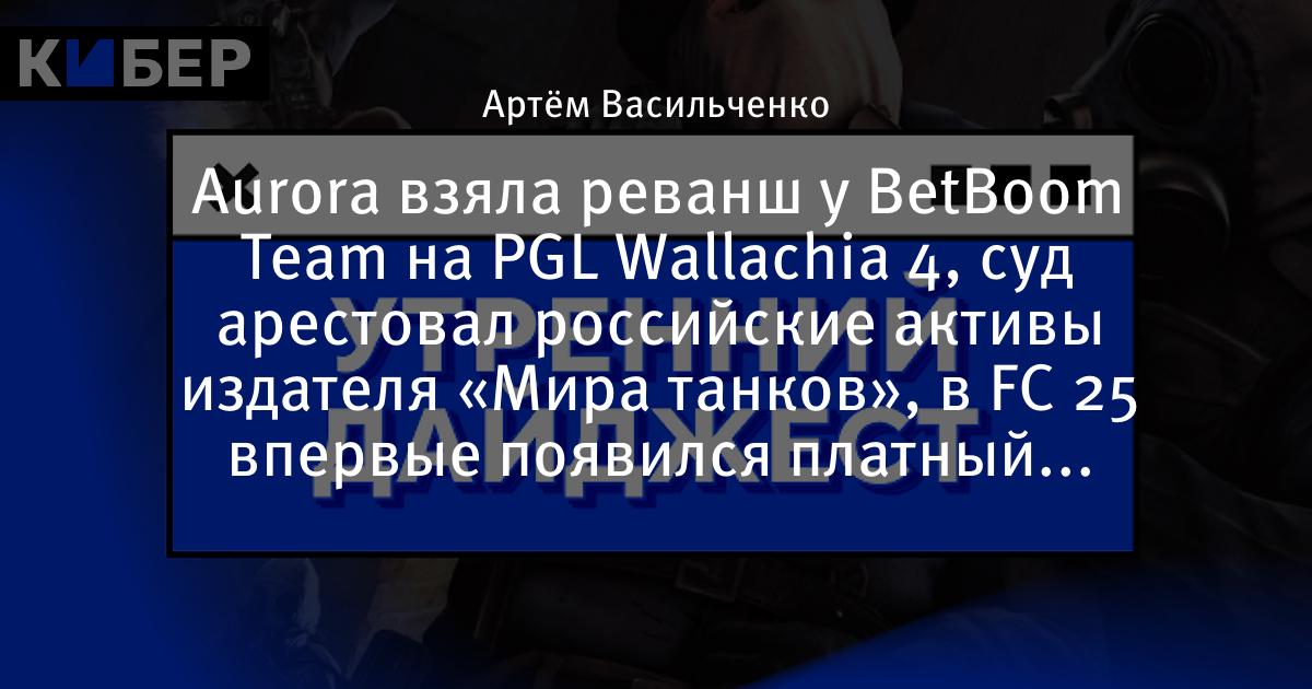 Aurora взяла реванш у BetBoom Team на PGL Wallachia 4, cуд арестовал российские активы издателя «Мира танков», в FC 25 впервые появился платный пропуск и другие новости утра