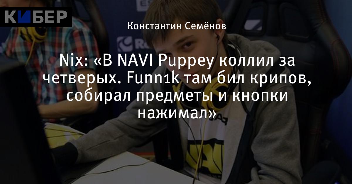 Nix: «В NAVI Puppey коллил за четверых. Funn1k там бил крипов, собирал предметы и кнопки нажимал»