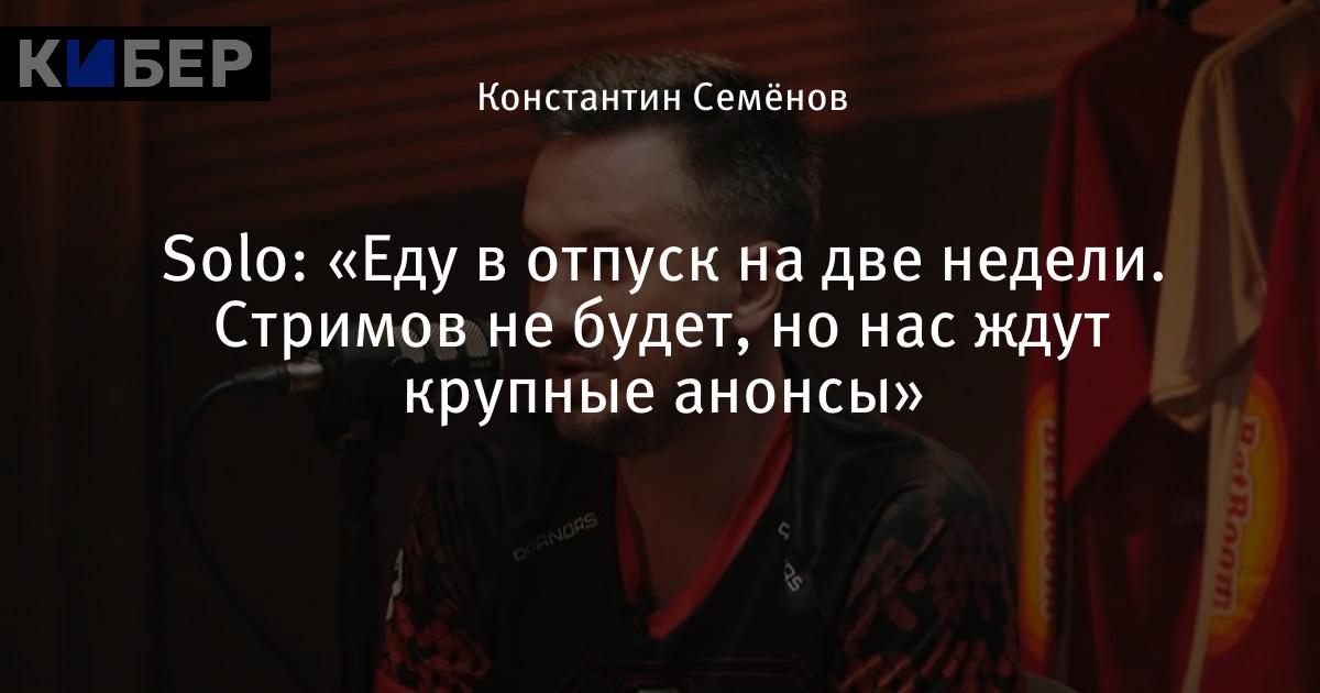 Solo: «Еду в отпуск на две недели. Стримов не будет, но нас ждут крупные анонсы»