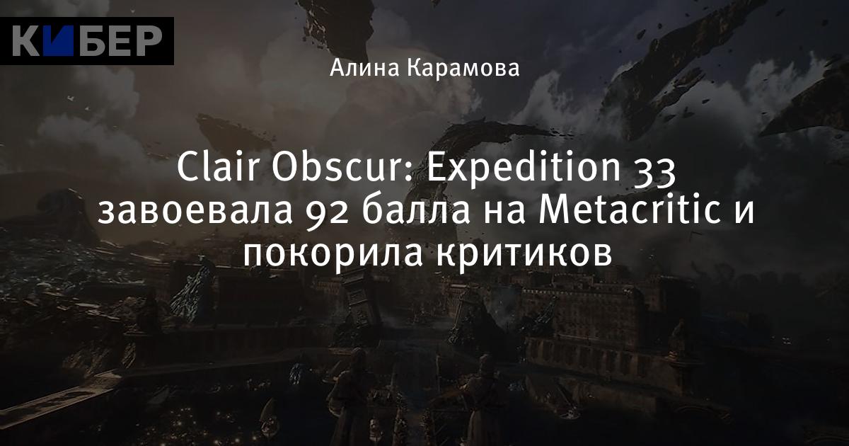 Clair Obscur: Expedition 33 стала хитом на Metacritic с 92 баллами.
