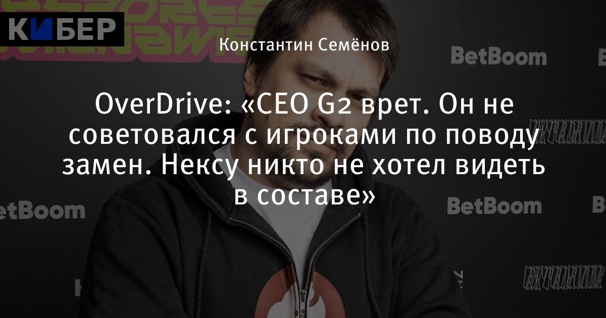 «СЕО G2 врет. Он не советовался с игроками по поводу замен. Нексу никто не хотел видеть в составе», – заявил Алексей «OverDrive» Бирюков.