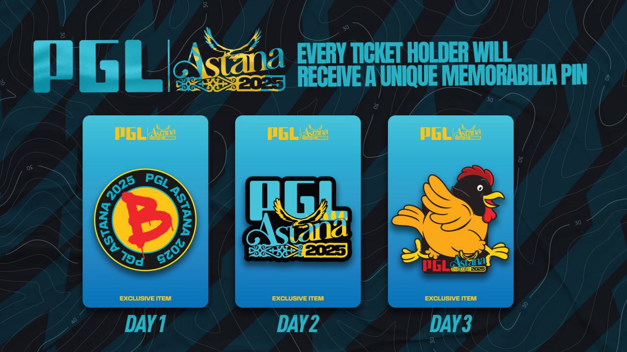 Организаторы PGL Astana 2025 раскрыли дизайн памятных значков, которые будут вручаться зрителям турнира. Каждый посетитель сможет получить пин за каждый день, проведенный на мероприятии. В общей сложности предусмотрено три уникальных варианта коллекционных предметов.