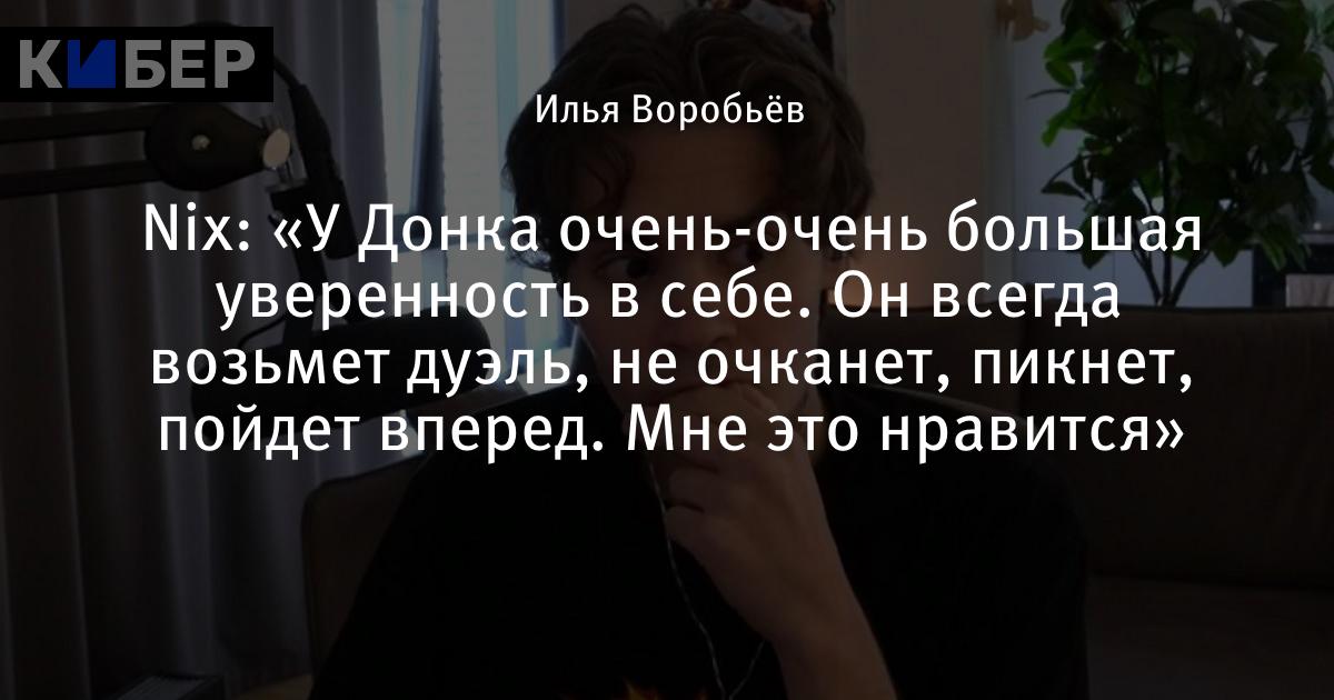Nix: «У Донка очень-очень большая уверенность в себе. Он всегда возьмет дуэль, не очканет, пикнет, пойдет вперед. Мне это нравится»