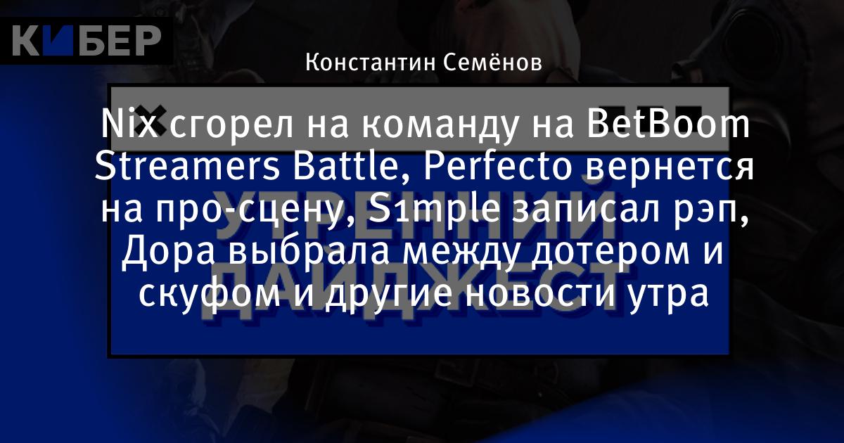 Nix сгорел на команду на BetBoom Streamers Battle, Perfecto вернется на про-сцену, S1mple записал рэп, Дора выбрала между дотером и скуфом и другие новости утра