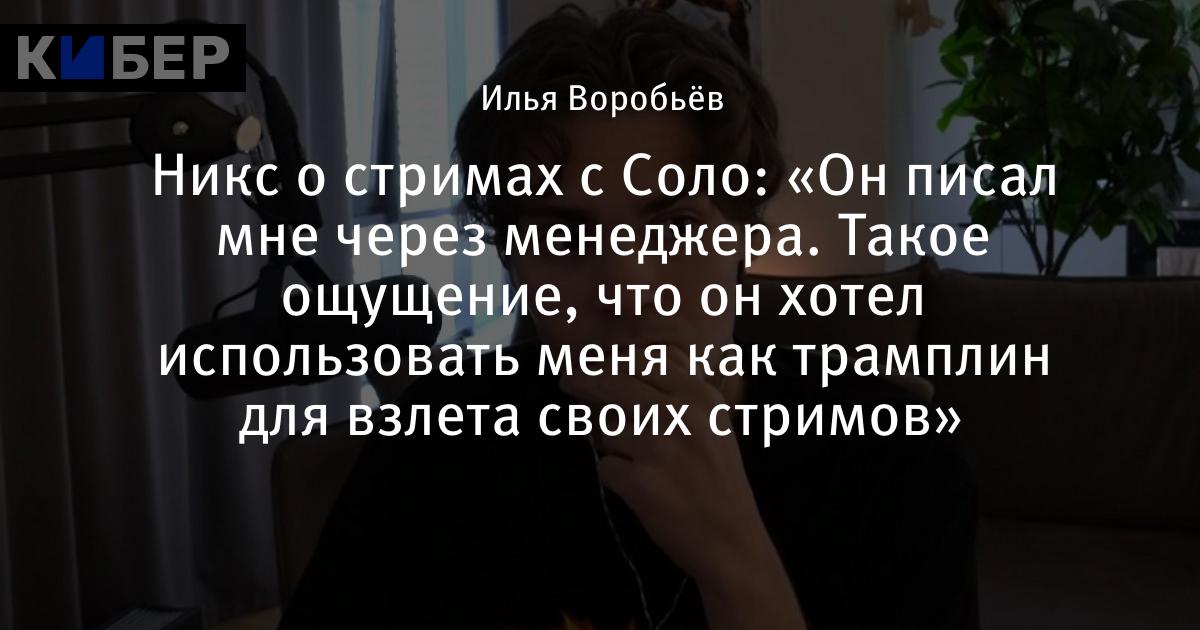 Никс о стримах с Соло: «Он писал мне через менеджера. Такое ощущение, что он хотел использовать меня как трамплин для взлета своих стримов»