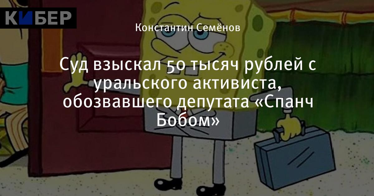 Суд взыскал 50 тысяч рублей с уральcкого активиста, обозвавшего депутата «Спанч Бобом»