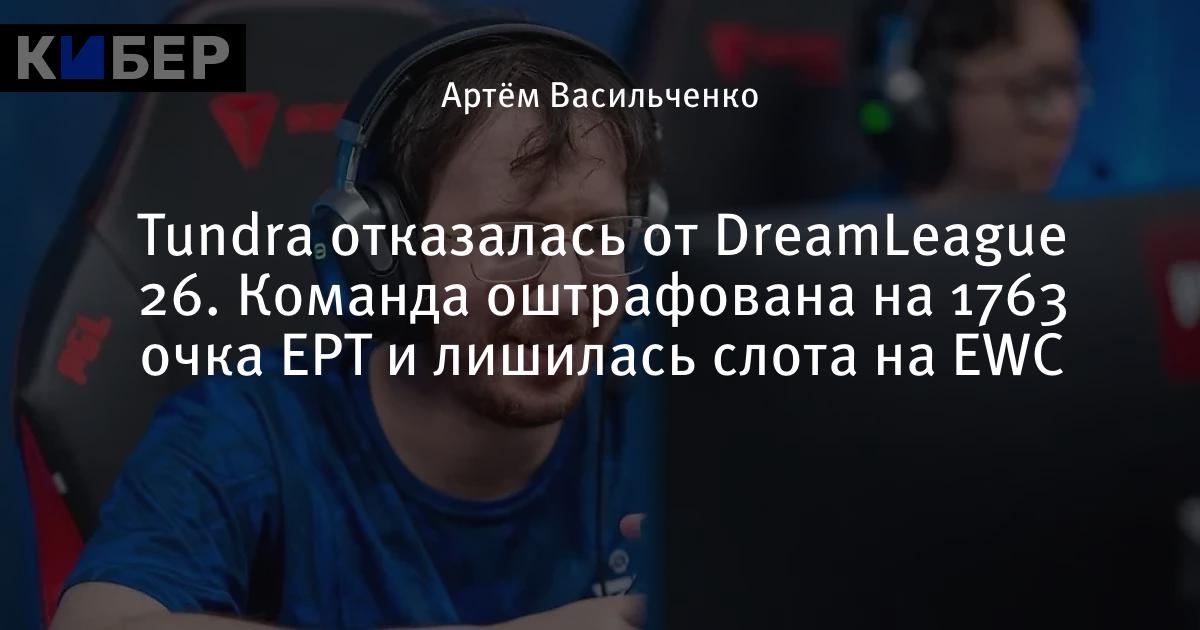 ESL сообщила, что Tundra отказалась от участия на DreamLeague 26. Команда получила штраф в размере 20% от очков EPT (1763), так как ранее подтвердила свое участие на чемпионате.