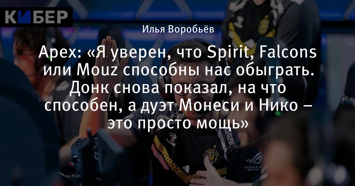 Apex: «Я уверен, что Spirit, Falcons или Mouz способны нас обыграть. Донк снова показал, на что способен, а дуэт Монеси и Нико – это просто мощь»