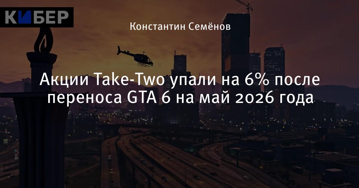 Акции Take-Two упали на 6% после переноса GTA 6 на май 2026 года