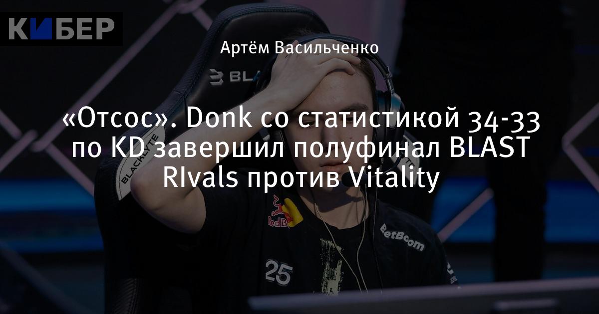 Данил «donk» Крышковец завершил полуфинал BLAST Rivals против Vitality со статистикой 34-33. Это второй результат в команде по KD после Дмитрия «Sh1ro» Соколова (+5)