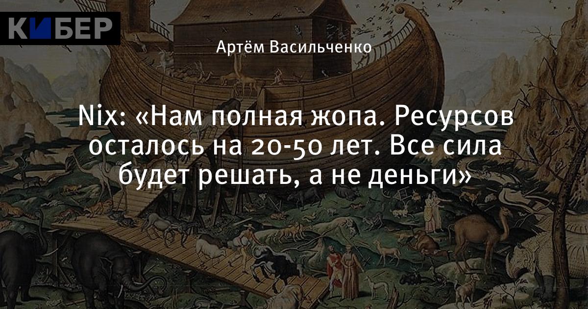 Nix: «Нам полная жопа. Ресурсов осталось на 20-50 лет. Все сила будет решать, а не деньги»