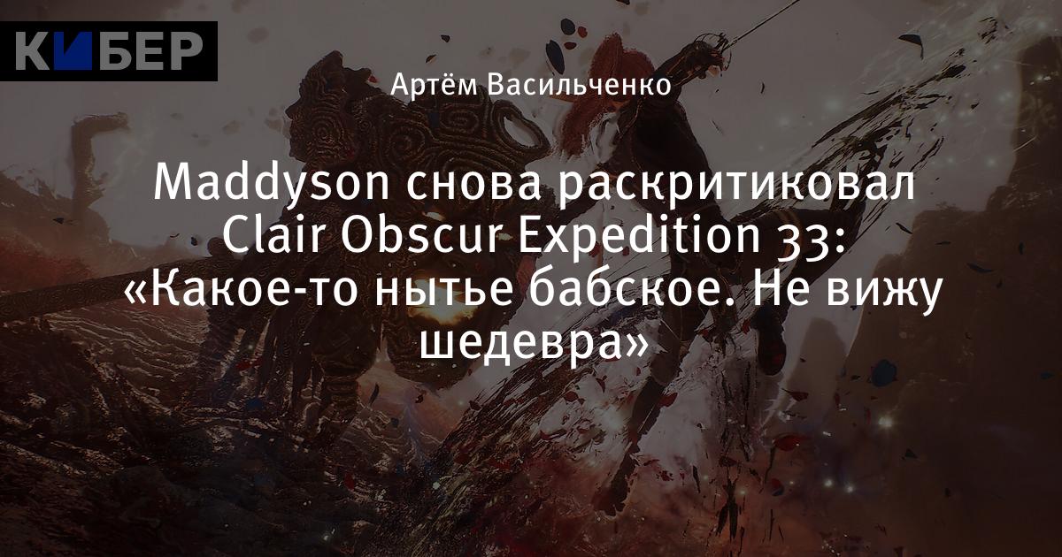 Maddyson снова раскритиковал Clair Obscur Expedition 33: «Какое-то нытье бабское. Не вижу шедевра»