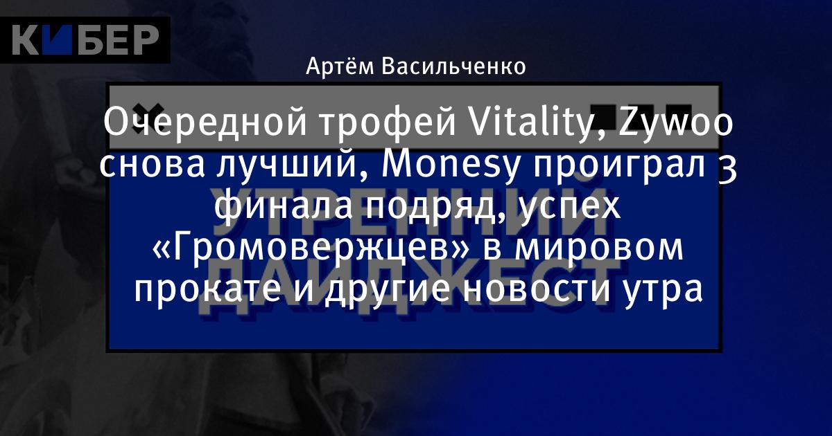 Очередной трофей Vitality, Zywoo снова лучший, M0nesy проиграл 3 финала подряд, успех «Громовержцев» в мировом прокате и другие новости утра